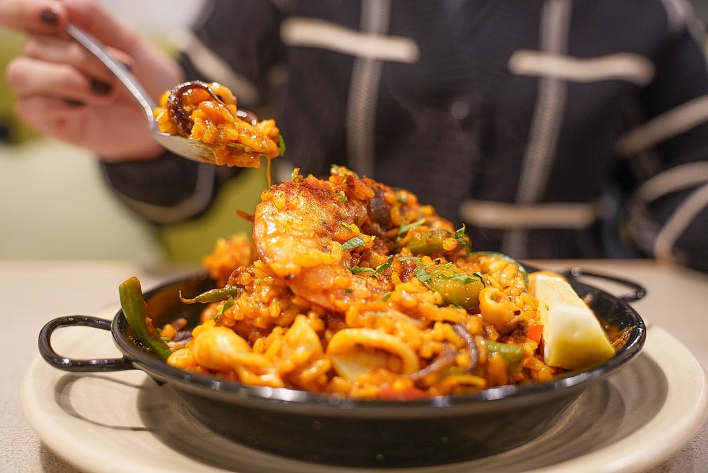 If you have been around for a while, you must know that at WSM we are obsessed with potatoes, so you cannot skip on their patatas bravas. The homemade chilli mayo has the perfect amount of chilli and the serving size is perfect to share. Don’t forget to try their chorizo and Spanish meatballs *chef’s kiss*. The baby octopus is served with some vegetables and the most delicious balsamic glaze, it will live in your mind rent free, and their baby prawns are served deep fried with aioli.