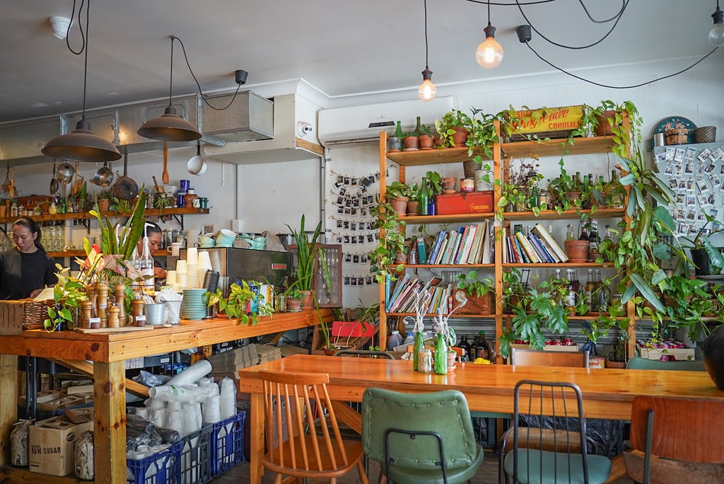 The space is filled with lush green plants, quirky knick-knacks, and a collection of books that add to its homey feel. It’s the perfect spot to enjoy a Sunday brunch with the family.
