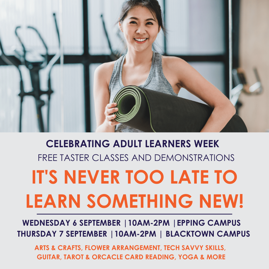 At MCC Macquarie Community College we believe “It’s Never Too Late To Learn Something New”! To celebrate Adult Learners Week in 2023, we will be holding free taster classes and demonstrations.