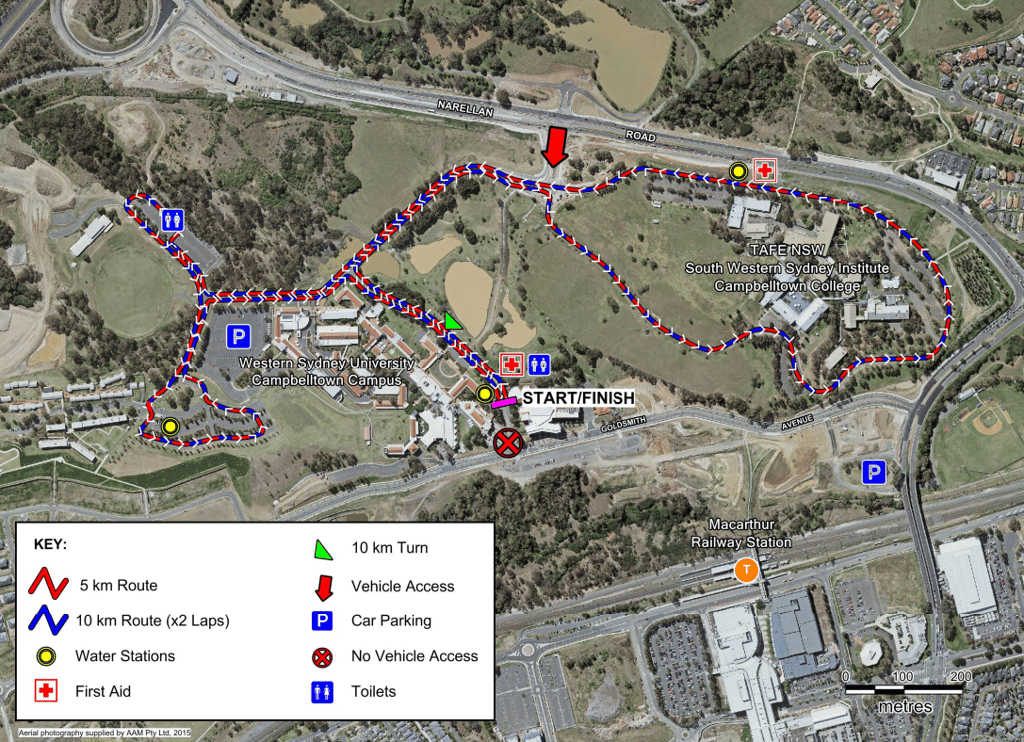 Our gradual 5km and 10km incline course weaves around the Western Sydney University and TAFE NSW Campbelltown campuses, with scenic views of the city and surrounding hills.