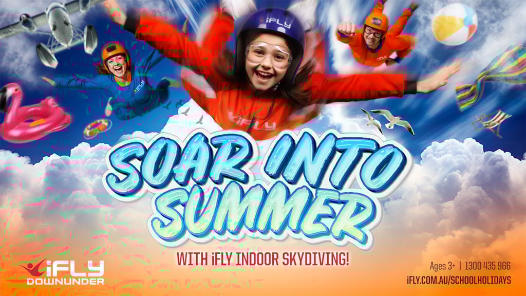 Fly from $90 per person with the iFLY Family and Friends package. Book at iFLY.com.au or call 1300 435 966 – slots will sell out this summer, so please book in advance.