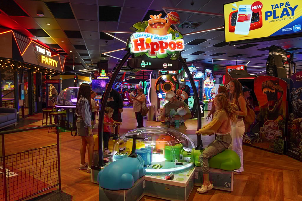 The brand new Timezone is fitted out with over 100 games, a Laser Tag Arena and Spin Zone Bumper Cars.   We especially loved the claw games and the Hungry Hungry Hippos.Â